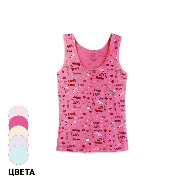 Классическая майка для девочек универсального кроя. Комфортно сидит и не стесняет движения ребенка на протяжении всего дня. Белье выполнено в приятных оттенках с рисунком в виде различных орнаментов и надписей. Гладкие швы не причиняют дискомфорт и не натирают нежную детскую кожу. Носить можно как дополнительный гигиенический слой под теплую одежду или как самостоятельную вещь для дома или жаркой погоды.