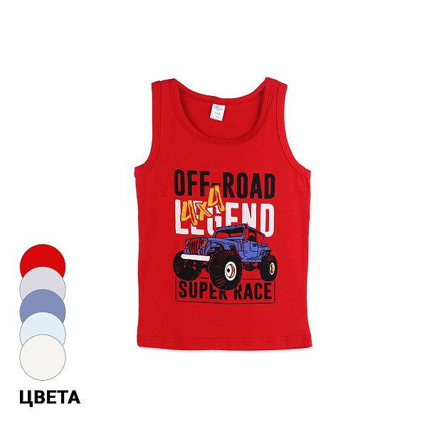 Традиционным элементом гардероба мальчика дошкольного возраста является майка. Модель создана с учетом всех потребностей ребенка, не ограничивает свободу движений. Широкие лямки не давят на плечи, не смещаются во время активных игр. Для оформления применяется актуальная цветовая гамма и тематические рисунки, нанесенные современным способом. Соединительные и отделочные швы выполнены аккуратно, не раздражают кожу.