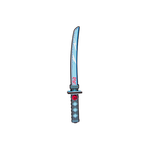 Устроить веселую игру с друзьями несложно, если в арсенале детей есть оригинальные мечи из прочного пластика. Игровое оружие имеет реалистичный дизайн: клинок украшен иероглифами, а на рукоятке нанесен оригинальный геометрический узор.