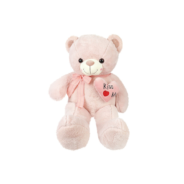 Медведь игрушка мягкая с сердцем персиковый 52см