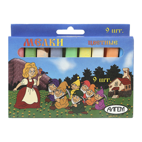 Мелки Алгем Белоснежка и семь гномов цветные квадратные 9шт 9цв