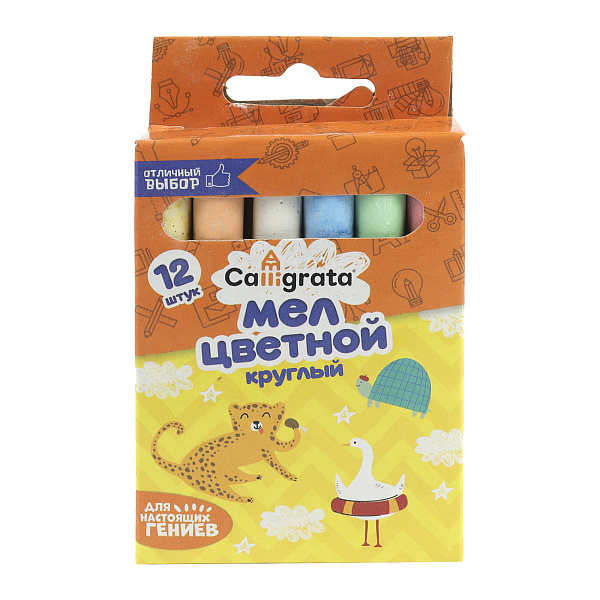 Цветные мелки для рисования от CALLIGRATA круглой формы школьные. Они подходят для рисования как на мелованной доске, так и на асфальте или другой шершавой поверхности. В наборе двенадцать мелков шести цветов: желтый, зеленый, оранжевый, синий, красный и белый. С их помощью ребенок сможет нарисовать картины с любым сюжетом. Для этого понадобится только его воображение.
