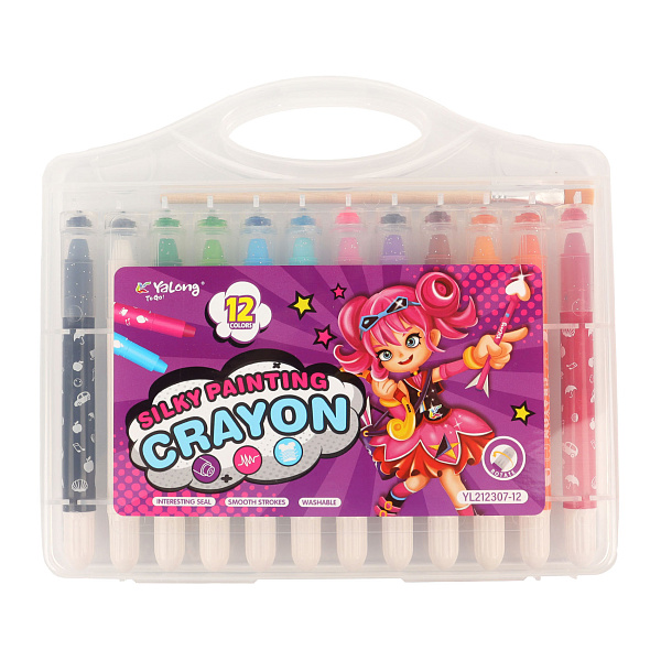 Восковые мелки со штампиком — это интересный художественный материал, который познакомит юного художника с новыми техниками рисования. В набор входит 12 восковых мелков разных цветов и кисточка для растушевки или комбинирования мелков с акварельными красками. Мелки упакованы в прозрачный пластиковый пенал, который помогает сохранять порядок в школьном рюкзаке или на рабочем столе.