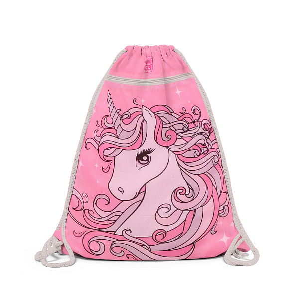 Мешок для обуви с карманом «Единорог» — стильный и практичный аксессуар для детей. Изготовлен из прочного розового материала и украшен красивым изображением единорога с детализированной гривой и нежными блестками. Дизайн дополнен серебристыми шнурками-лямками.