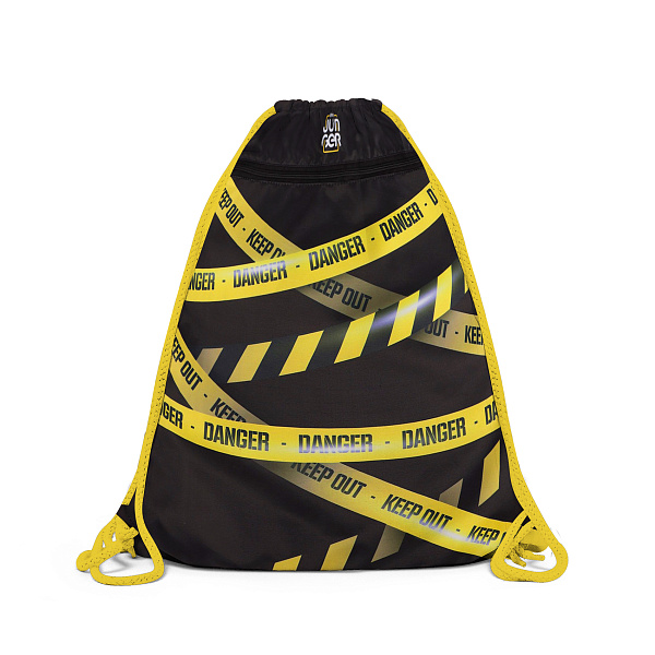 Мешок для обуви с карманом и ярким дизайном «Danger» — это стильный и функциональный аксессуар, который понравится активным и смелым детям. Этот черный мешок украшен желтыми лентами с надписями «DANGER» и «KEEP OUT», что придаёт ему дерзкий и современный вид.