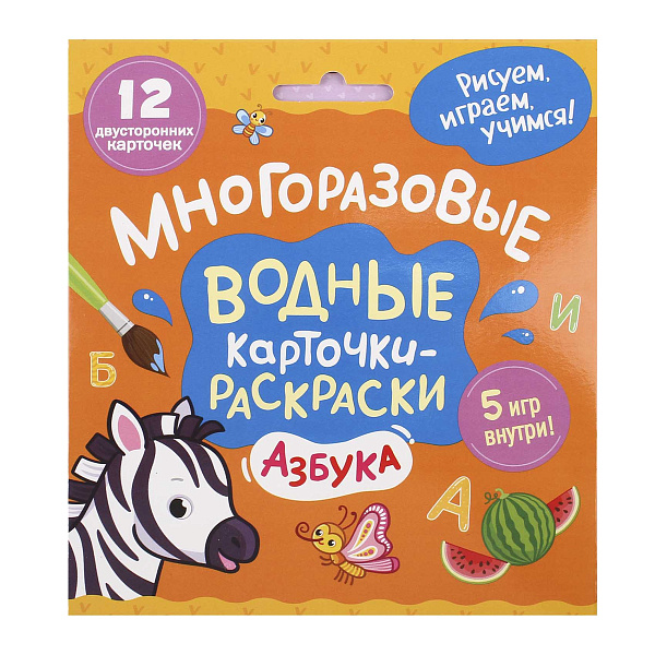 Многоразовые водные карточки-раскраски «Азбука» созданы для радости и обучения детей с самого раннего возраста. В наборе 12 двусторонних карточек, которые помогают малышу развивать речь, логическое мышление и внимание. На лицевой стороне карточек размещены загадки и картинки для раскрашивания, которые становятся яркими и красочными при взаимодействии с водой. На обороте – буквы, слова и вопросы.