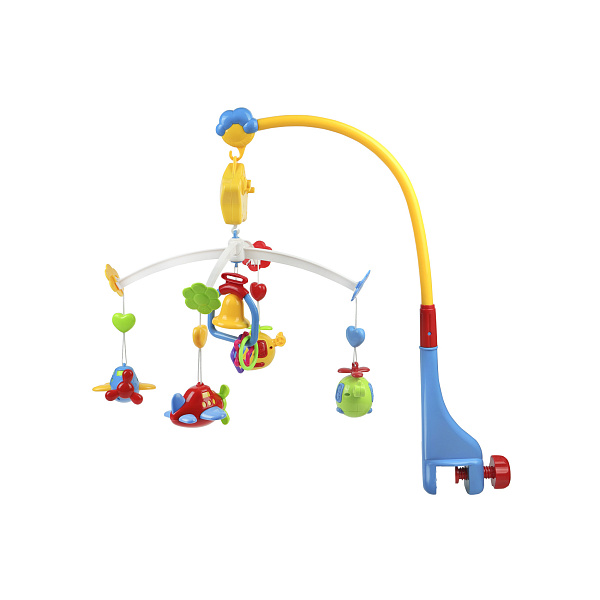 Одной из первых игрушек малыша станет музыкальная карусель, легко и надежно фиксирующаяся на бортике кроватки. Кружащие под нежную успокаивающую мелодию вертолеты заинтересуют ребенка, заставят сконцентрировать внимание. Такой мобиль влияет на зрение и слух, развлекает и успокаивает детей.