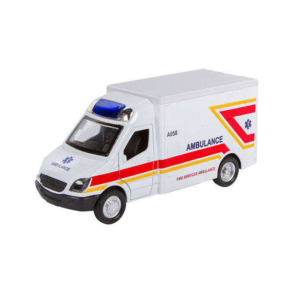 Уменьшенная модель автотранспорта с фрикционным двигателем дополнит игровую коллекцию ребенка. Фургон имеет надпись скорой медицинской помощи, поэтому представлен в характерных красно-белых цветах. В фургоне открываются двери и багажный отсек, включается звук и свет фар. Корпус вылит из прочного металлического сплава, салон и рама изготовлены из гипоаллергенного пластика. Модель обладает инерционным механизмом: просто откатите ее назад, и авто устремится вперед. Машинка развивает моторику рук малыша, внимание и координацию в пространстве. Работает от батареек, в комплект не входят. Рекомендовано для детей старше 3 лет.
