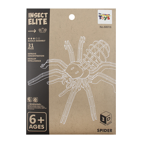 Сборная модель «Тарантул» — это увлекательный деревянный конструктор, который позволяет ребенку самостоятельно собрать реалистичную трехмерную фигурку паука. Все материалы в наборе безопасны, произведены из экологически чистого дерева и тщательно обработаны, поэтому отсутствует риск пораниться — края деталей гладкие и не имеют острых участков.