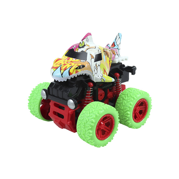 Монстр-трак Граффити Акула инерционный с зелеными колесами 10см