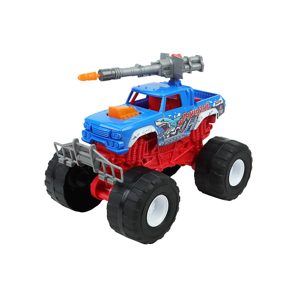 С таким боевым внедорожником можно разыгрывать сражения не только дома, но и на детской площадке. Машинка издает звук, похожий на рев мотора. Для звуковых и световых эффектов нужны 3 батарейки LR44. Материал изготовления – металл. Размер машинки – 25см. Игрушка предназначена для детей старше 4 лет.