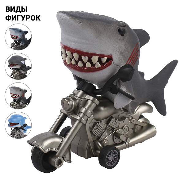 Мотоцикл с фрикционным механизмом — яркий и увлекательный элемент коллекции игрушек. Ассортимент включает модели с акулами и дельфинами, что делает каждую игрушку уникальной и привлекает внимание детей.