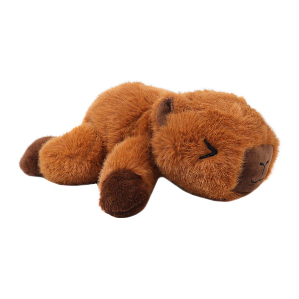 Мягкая игрушка выполнена в форме капибары. Поверхность имеет густой ворс, приятный на ощупь. Глаза и нос аккуратно вышиты прочными нитями. Такое оформление делает игрушку безопасной для маленьких детей. Отсутствуют твердые пластиковые детали. Игрушка хорошо сохраняет форму после сжатия. Мордочка передает доброжелательное выражение.