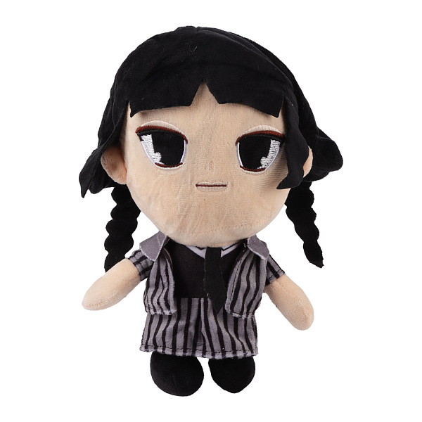 Мягкая игрушка, вдохновленная известной историей Семейки Аддамс, станет ярким дополнением любой коллекции. Кукла выполнена из мягкого текстиля, что делает ее безопасной для детей любого возраста. Особое внимание привлекает реалистичное исполнение: черно-белая полосатая одежда, аккуратные косички и выразительные глаза.