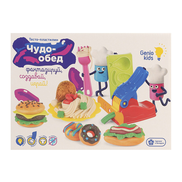 Тесто мягкое, эластичное и безопасное для детей. С помощью данного набора можно лепить реалистичные блюда — от бургеров и хот-догов до пончиков и салатов. Процесс лепки развивает мелкую моторику, пространственное мышление и креативные навыки.