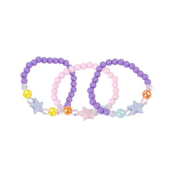 Яркие браслеты дополнят образ маленькой модницы, а также внесут в него волшебную изюминку. Девочка старше 3 лет по достоинству оценит аксессуары, найдет им применение. Изделия изготовлены из прочного сертифицированного пластика, обладающего устойчивостью к износу и истиранию. Такой материал не содержит токсичных компонентов и не способен вызвать аллергическую реакцию. Гладкая поверхность украшений не травмирует кожу, не впитывает влагу и загрязнения. Использование декоративных украшений формирует чувство стиля, дарит ребенку положительные эмоции. Браслеты представлены в ассортименте. Рекомендовано для детей старше 3 лет.