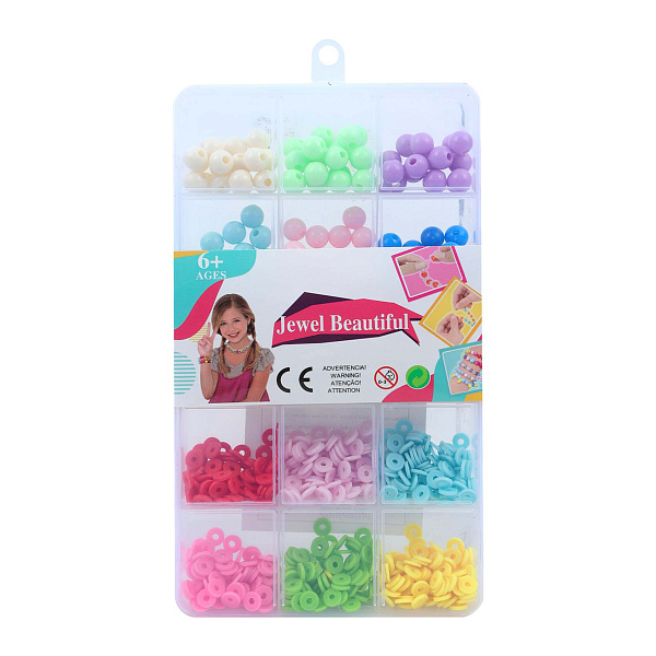Бусины выполнены из пластика, имеют гладкую поверхность. Леска прочная, не рвется при натяжении. Набор подходит для детей от 6 лет. Создание украшений развивает креативность, аккуратность и внимание. Контейнер удобно хранить, все детали находятся на своих местах.