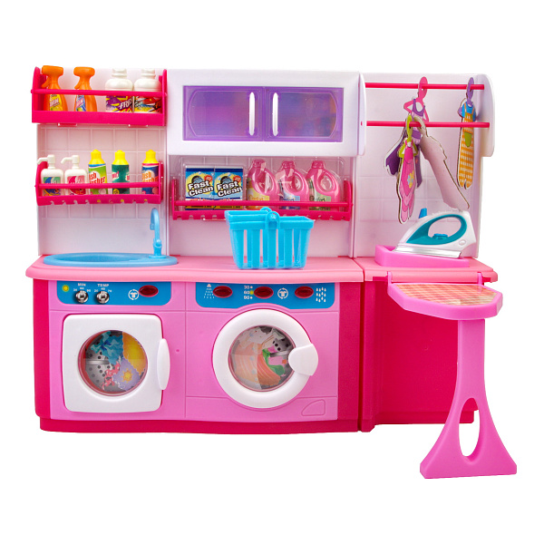 Полезным подарком для маленькой хозяйки станет комплект игрушечной бытовой техники в красочной картонной коробке. В нем есть все необходимое для домашней работы – стиральная машина, утюг, раковина, моющие средства и шкафчики. Удивительно реалистично выглядит машинка для стирки белья, утюг, плита с духовкой, посуда, кухонный гарнитур.