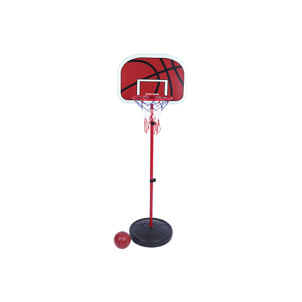 В набор для увлекательной игры в баскетбол входят: баскетбольное кольцо на стойке красного цвета с белой окантовкой и черными полосами. Сетка трехцветная (синий, белый и красный), прикрепляется к красному кольцу. Высота стойки легко регулируется с помощью специальных черных спусков. Крепежи стойки черные, откручиваются. Ее можно собирать и разбирать. Игрушка подойдет для детей любого роста, так как высоту стойки можно регулировать. Баскетбольный набор разовьет подвижность ребенка. Набор упаковывается в картонную коробку с белой ручкой.
