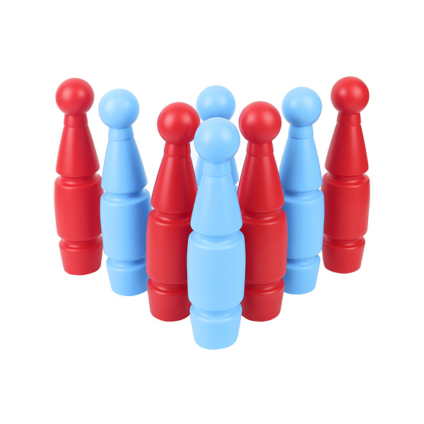 Боулинг – интересная и полезная для здоровья игра, за которой время летит незаметно. Поиграть в нее можно не только в дорогих специализированных залах, но и во дворе, на даче или в детской комнате, если приобрести специальный игрушечный набор для боулинга. В него входят восемь красных и синих пластмассовых кеглей и два шарика.