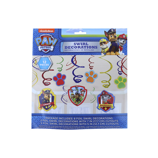 Комплект из двенадцати предметов для декорирования праздничной комнаты с изображениями героев мультфильма понравится каждому ребенку. Набор украшен цветными отпечатками лап (зеленого, красного и оранжевого цвета) с длинными разноцветными спиралями (три красных, две зеленых, три синих, две золотых и одна розовая) и нитью с полупрозрачным кольцом. Длина – 46-60см. Длинные ленты светятся и прикрепляются к картонным картинкам. С помощью кольца их легко закрепить на гвоздях и других выпуклых поверхностях. Если ребенок обожает этот мультфильм и хочет необычный праздничный дизайн, то такой набор как раз то, что нужно. Состоит из картона.