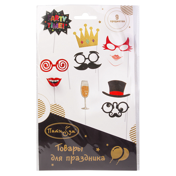 В наборе 9 разных образов на выбор. Подходящие детали образов есть и для участников обоих полов. Удастся примерить и разные виды очков, и усики, и красную помаду. Для самых высокопоставленных гостей есть даже золотая корона и бокал шампанского. В увлекательной съемке с радостью поучаствуют дети, примеряя на себя образы взрослых.