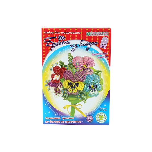 Этот букет никогда не завянет, потому что изготовлена из бисера. Набор «Анютины глазки» позволит ребенку своими руками создать пышный букет. Размер букета 11х12см, благодаря небольшому размеру он чудесно украсит полку или поместится в маленькой вазе. В наборе ребенок найдет все необходимое: пакетик разноцветного бисера, проволоку и инструкцию. Материалы предназначены для создания одной композиции. Сплетите с ребенком всю серию букетов, что превратить комнату в сказочный сад с вечными растениями. Благодаря пошаговой инструкции ребенок создаст забавный сувенир, а также разовьет моторику рук, усидчивость и воображение. Рекомендовано для детей с 10 лет.