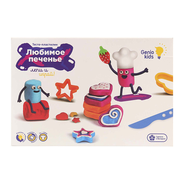 Набор для лепки «Любимое печенье» Genio Kids — это идеальный выбор для веселого и полезного досуга. В комплекте: 6 разноцветных брусков пластилина по 30 граммов каждый, 10 формочек, скалка и стек, которые помогут создать уникальные и красивые поделки.