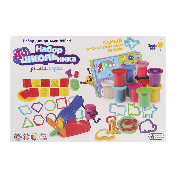 Большой набор для лепки «Набор для школьника» Genio Kids включает всевозможные инструменты и материалы для творчества и развития ребенка. В комплект входят: