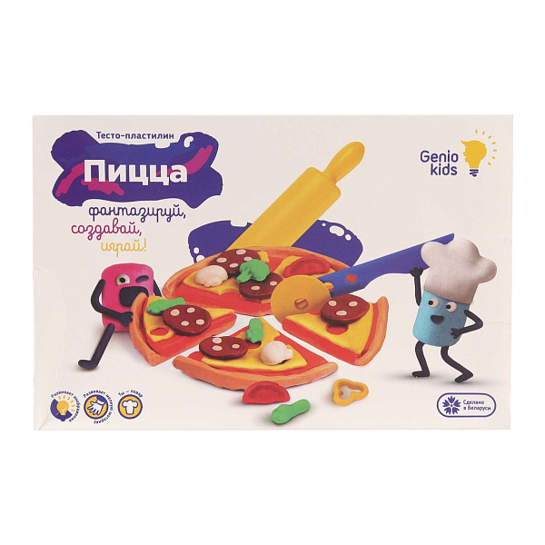 Набор для лепки «Пицца» Genio Kids поможет ребенку почувствовать себя настоящим пиццайоло. В комплект входит шесть ярких кусочков теста по 30 граммов, которые позволят создать аппетитную пиццу. Скалка из прочного пластика предназначена для того, чтобы легко раскатывать тесто и готовить основу для пиццы. Формочка-блистер поможет вылепить различные ингредиенты: колбаски, грибы, овощи и другие вкусности. Специальный нож для пиццы помогает аккуратно нарезать готовое изделие на кусочки.