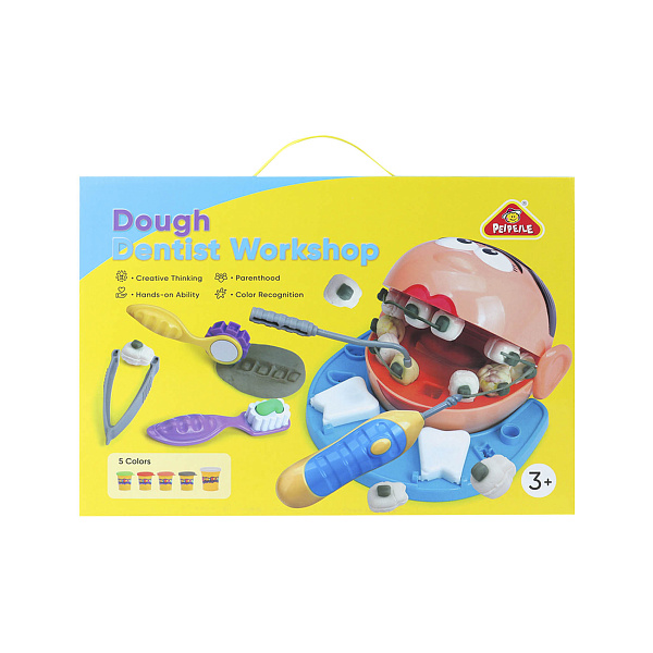 Весело провести время, а заодно попробовать себя в роли стоматолога ребенку поможет набор массы для лепки «Дантист». Он состоит из мягкого пластилина в четырех цветах, каждый из которых упакован в отдельную герметичную емкость. В комплекте также есть 12 дополнительных предметов. Среди них большая фигурка в виде головы с открывающимся ртом, комплект игрушечный стоматологических аксессуаров и специальные формы, упрощающие процесс лепки.