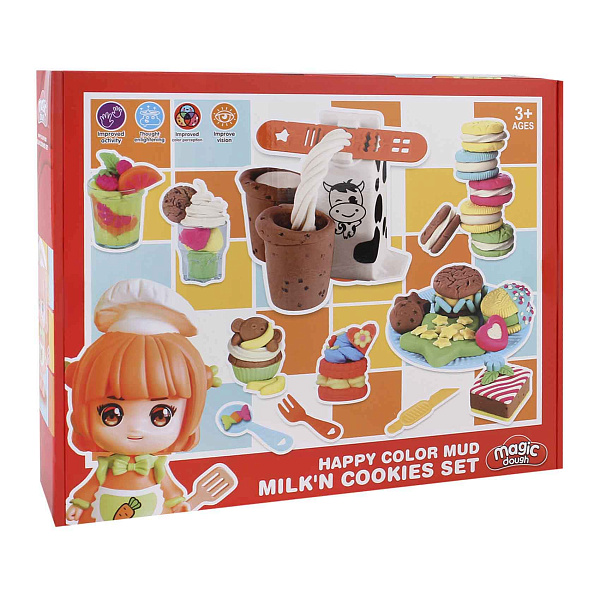 Набор для лепки «Молочное печенье» — это увлекательное сочетание творчества и игры. В комплекте представлено 10 кусочков разноцветной массы для лепки, которая мягко формируется в любые задумки. Изделие включает 4 формочки различных форм: звезда, сердце, круг и квадрат. Они позволят создавать причудливые печенья и десерты с детальной отделкой.