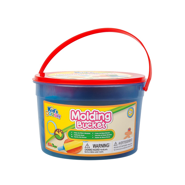 В большом ведре из пластика ребенок найдет пластичную и тягучую массу из четырех цветов, фигурные формочки, скалку и ножик для нарезания заготовок. Манипуляции с упругим тестом полезны для развития детей. Они улучшают моторику рук, положительно влияют на воображение, логическое мышление, речь и память.