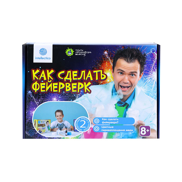 Набор для опытов «Как сделать фейерверк» позволяет юному исследователю изготовить фейерверк в домашних условиях, а также провести увлекательный опыт с цветовым перевоплощением меди. Игры с такими наборами способствуют развитию любви к науке у детей, формируют навыки мышления, внимания и познавательности. В наборе предоставлена подробная инструкция, с помощью которой юный химик сможет сделать все правильно и безопасно. Также в комплекте идет медная проволока, пипетка Пастера, чаша Петри, мерная ложка, подставка для пробирок, чаша для выпаривания, сухое горючее, пробирки, калий, кальций, медь, соляной раствор и перчатки.