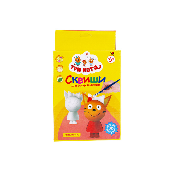 В представленный набор входит фигурка-сквиш Карамельки, которую необходимо собственноручно раскрасить по инструкции. Чтобы ребенку не пришлось морочиться с выбором цветов, в состав набора входят краски (6 штук), пластиковая игрушка, а также кисточка и цветная инструкция, которая подробно объясняет в каком порядке и как нужно раскрашивать игрушку, чтобы она стала похожей на героя мультфильма «Три Кота».