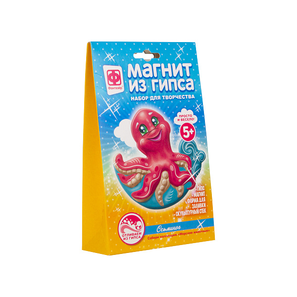 Сделать магнит вы сможете вместе с ребёнком замесить гипс в особой формочке, затем прикрепить магнит и раскрасить получившееся изделие. Комплект «Осьминог» состоит из: гипса для лепки; магнита; формочки для заливки; скульптурного стека. Данное занятие будет полезно ребёнку тем, что даст ему новую информацию об окружающем мире, научит его творить и будет развивать его сообразительность.
