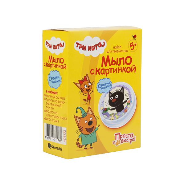 Самостоятельно изготовить мыло с изображением забавного Сажика из мультфильма «Три кота» детям поможет готовый набор для домашнего творчества. Доверить подобное занятие смело можно ребенку старше 8 лет. В процессе работы формируется художественный вкус, самостоятельность, целеустремленность и усидчивость, развивается фантазия и логическое мышление. В составе компонентов нет опасных для здоровья веществ, а решить задачу поможет простая инструкция.