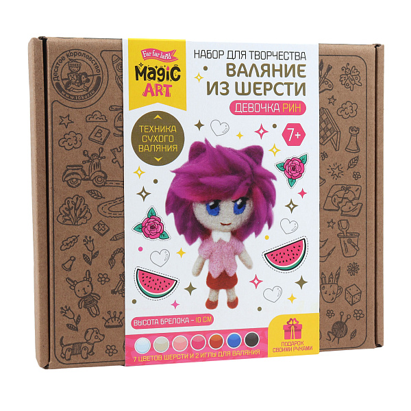 Набор для творчества «Валяние из шерсти: Девочка Рин» — это увлекательный комплект для детей от 7 лет, позволяющий освоить технику сухого валяния и создать объемный мягкий брелок своими руками. Набор содержит 7 цветов шерсти и 2 иглы для валяния, а также подробную инструкцию с пошаговыми фотографиями, которая поможет ребенку легко справиться с созданием яркой и оригинальной фигурки.