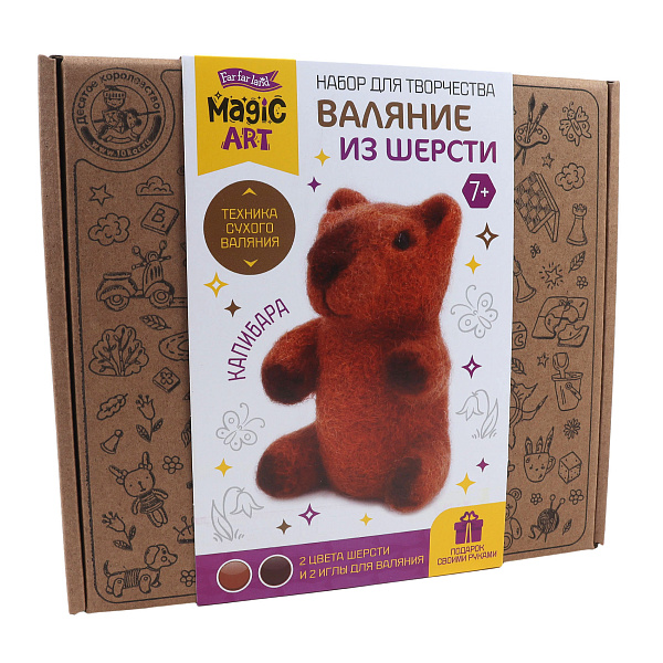 Набор для творчества «Валяние из шерсти: Капибара» — это интересный и увлекательный комплект для детей от 7 лет, который позволяет освоить технику сухого валяния и создать объемную игрушку своими руками. Благодаря подробно иллюстрированной инструкции ребенок шаг за шагом научится превращать шерсть в настоящего забавного капибару.