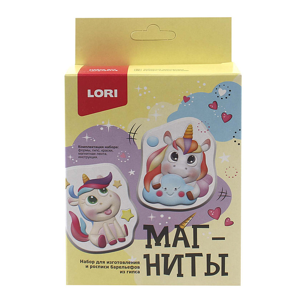 Набор для творчества LORI Магниты из гипса Забавные единорожки с 5лет