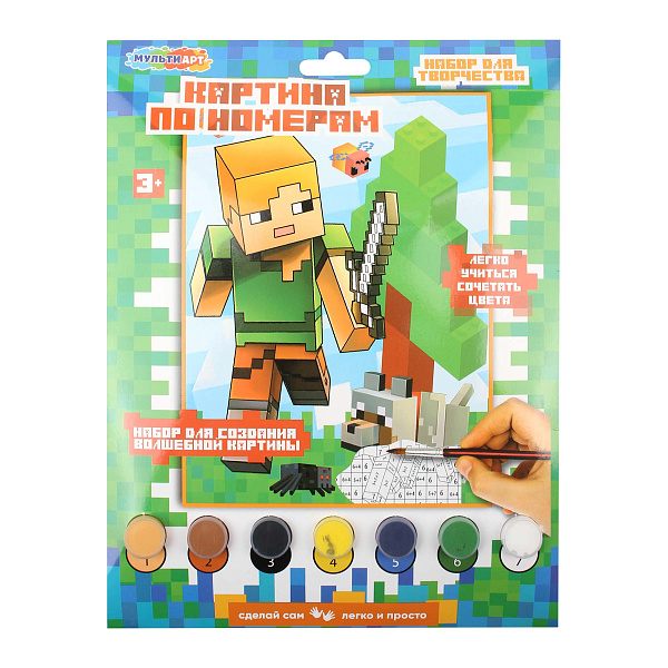 В комплекте — качественный холст с контурным рисунком и примерами, 7 баночек акриловых красок и кисточка для удобного нанесения краски. Краски безопасны для детей, гипоаллергенны, легко наносятся и быстро сохнут, позволяя создавать яркую и долговечную картину. Плотная основа холста обеспечивает равномерное распределение краски и сохранность изображения. Набор подходит для детей от 3 лет и старше, а готовая работа станет прекрасным украшением интерьера или уникальным подарком, созданным собственными руками.