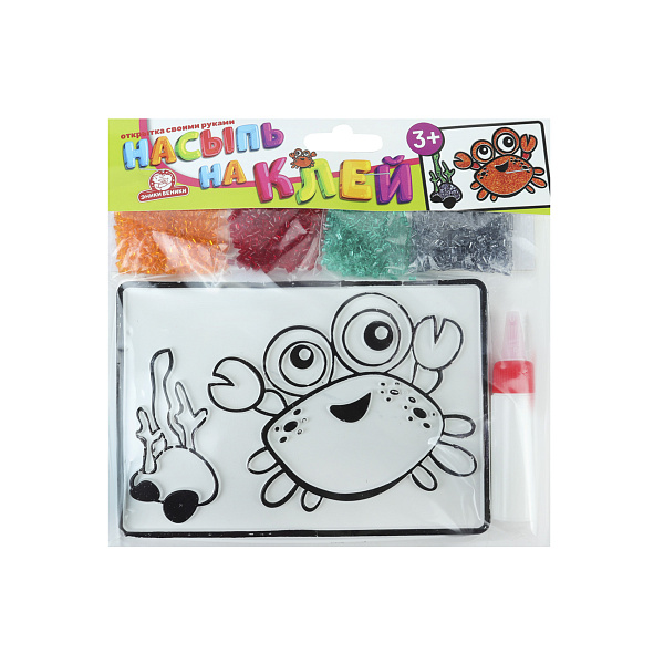 Набор поможет весело и увлекательно провести время с ребенком. Своими руками можно создать яркую открытку с изображением милого краба.