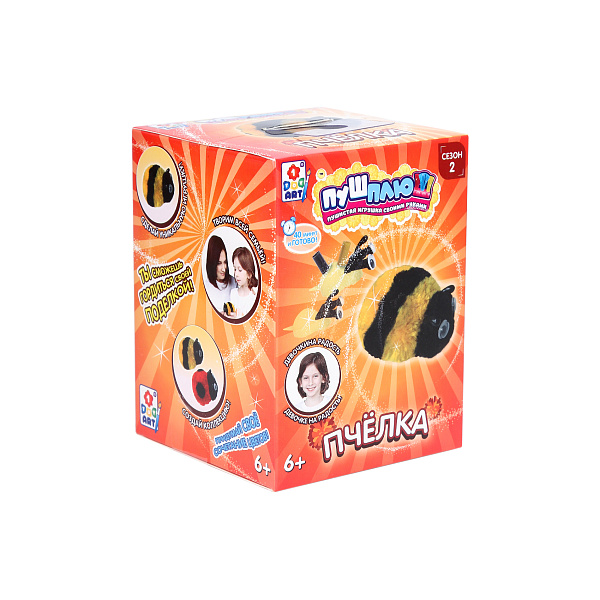 В него входят: опора для сборки, меховые капсулы оранжевого и черного цвета с защитным слоем, глазки, клейкая лента и инструкция. Сборка игрушки займет не больше сорока минут. Капсулы нужно присоединять в соответствии с порядковым номером. Ребенок сможет создать не только пчелу, но и божью коровку. Если вы хотите подарить ребенку необычную игрушку и развить его творческие способности, то этот набор – как раз то, что нужно. Рекомендовано для детей старше 6 лет.