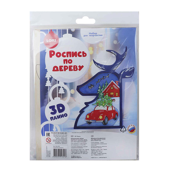 Набор для творчества «Роспись по дереву. Сказочные моменты» позволяет создать уникальное декоративное панно с изображением оленя и тематических зимних сюжетов. В комплект входят три деревянных заготовки с нанесенными контурами, набор акриловых красок, кисть, наждачная бумага, лак с блестками и подробная инструкция.
