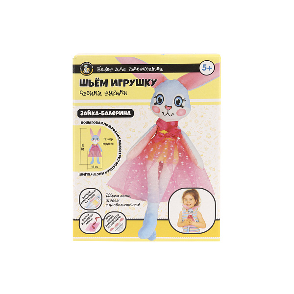 "Зайка-балерина" — это набор для творчества, который займет ребенка на длительное время. Готовый комплект позволит развивать творческие способности, мышление и мелкую моторику. Процесс создания мягкой игрушки дает возможность фантазировать и учиться новому. Можно собрать коллекцию из игрушек, который ребенок сшил самостоятельно. Или подарить готовое изделие родственникам.