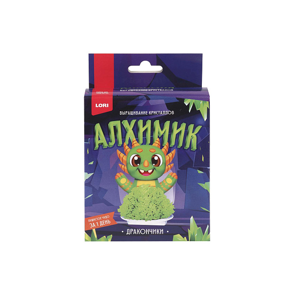 Набор «Зеленый дракончик» из серии «Алхимик» создан для выращивания кристаллов в домашних условиях. В упаковке ребенок найдет все необходимое: набор растворов, специальный поддон, картонную основу и подробную инструкцию. В процессе смешивания элементов нужно соблюдать инструкцию и технику безопасности.