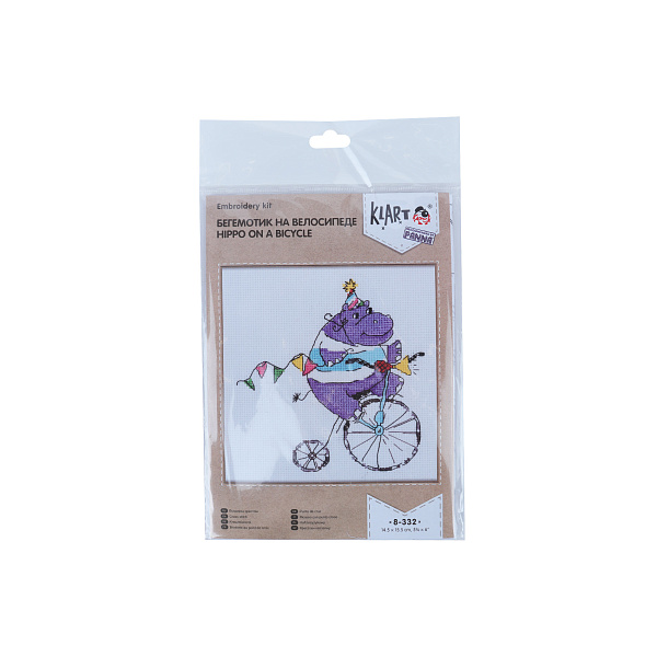 Маленькая рукодельница будет рада получить в подарок творческий набор для вышивания крестом «Бегемотик на велосипеде». С помощью этого набора она сможет самостоятельно изготовить вышивку со смешным сиреневым бегемотом, разъезжающем на старинном велосипеде.