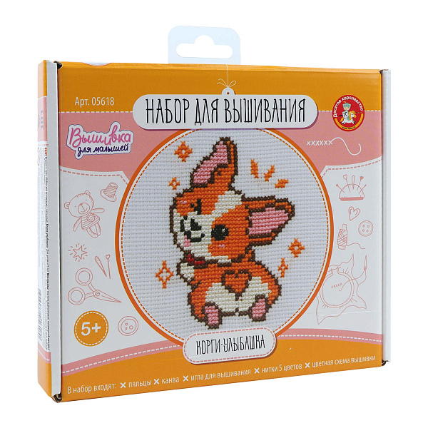 Набор для вышивания Десятое Королевство Корги-улыбашка с пяльцами с 5лет