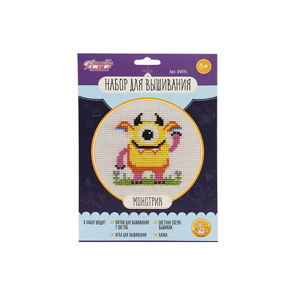 Набор для вышивания "Монстрик" — возможность удивить и порадовать ребенка. Готовый комплект позволит увлечь детей на длительное время за интересным занятием. У ребенка развивается мелкая моторика, фантазия и мышление.