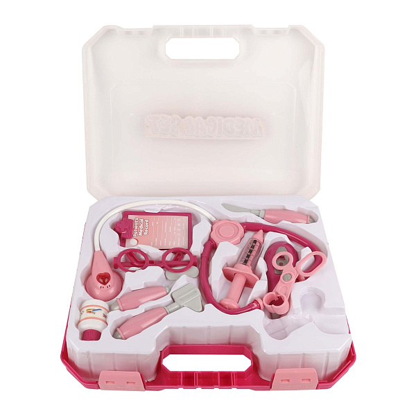 В набор входит чемоданчик с необходимыми для маленького доктора: глюкометр, фонендоскоп, очки, шприц, скальпель, инструменты для осмотра, карта пациента и баночка с лекарством. Такое разнообразие поможет проявить фантазию и воплотить самое разные сценарии. Все игрушки выполнены из пластика и безопасны для ребенка.